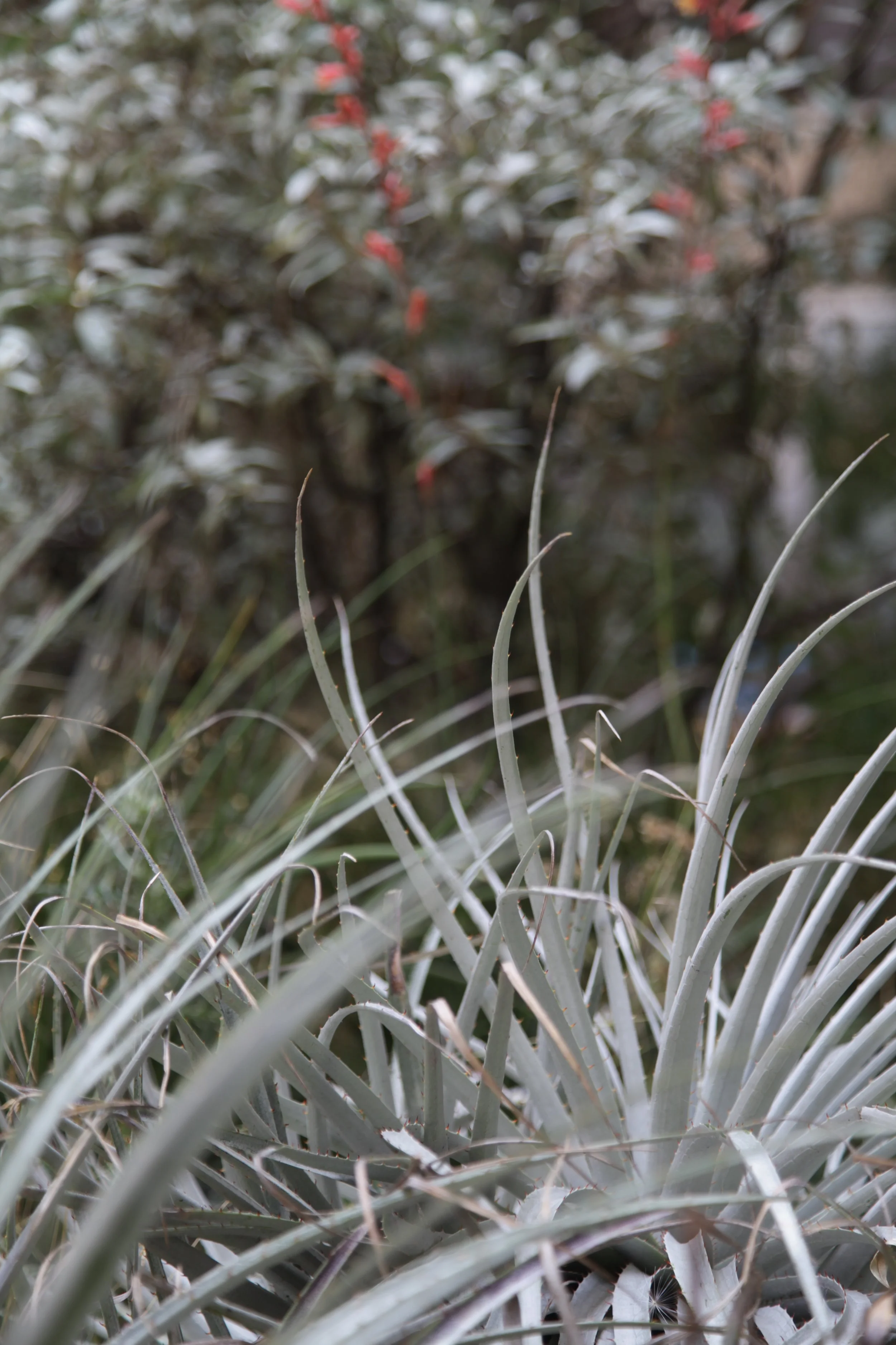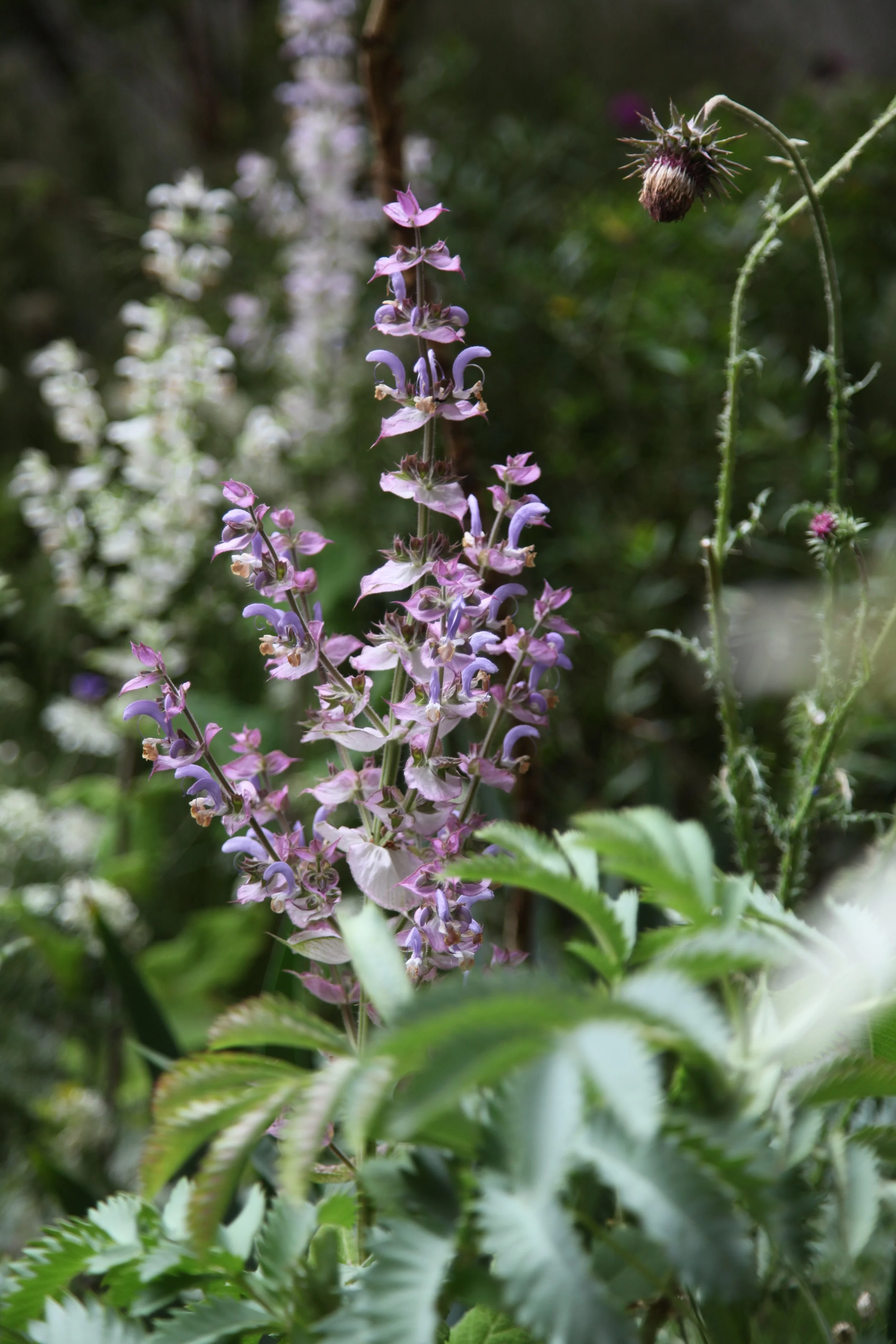Responding to the brief of ‘Hermès, A Human Odyssey’, the silvery, drought-tolerant plantings were evocative of Mediterranean regions. Aromatic myrtles, lavender, Nepeta curviflora and unusual Salvia’s (S ‘African Sky’, S. argentea, S. sclarea ‘Vatican White’) formed a softly undulating matrix that contrasted with architectural perennials: Echium pininana ‘White Tower’, a rare, pure white version of the purple tree Echium, and the spiny, silver-grey leaf rosettes of Puya coerulea.